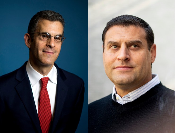 The death penalty has been shown to not be a deterrent to murder, say Northeastern law professors Daniel Medwed (left) and Dan Urman. Photos by Matthew Modoono/Northeastern University
