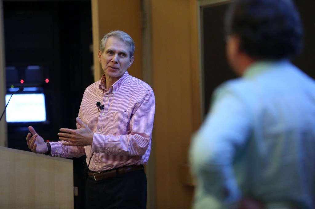 Kim Lewis, University Distinguished Professor of Biology, said that microbiology lights his fire, noting that “Microbes interact with each and every creature on the planet” and affect most if not all bodily and cognitive functions. Lewis said his team in the Northeastern’s Antimicrobial Discovery Center attempt to attack many unsolved problems and paradoxes. “Why?” he asked. “Because it’s fun.”