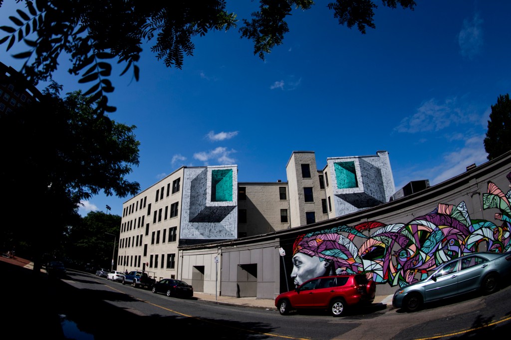 Parisian graffiti artists Greg Astro and Walter Javier Lopez Bartesaghui created a three-dimensional mural on a two-dimensional wall atop Burstein Hall, and our university photographers were there to document the whole process. From paint-mixing to the final reveal, watch the process unfold through their lenses.